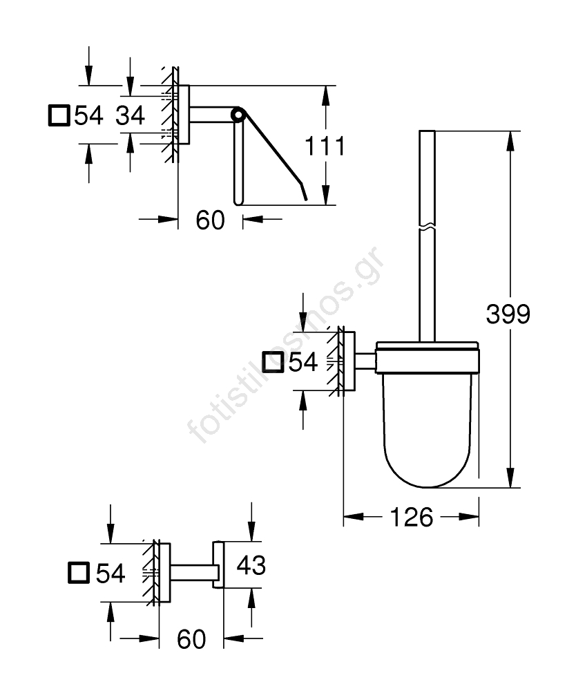 • Το σετ περιλαμβάνει γάντζο για ρόμπα, θήκη χαρτιού υγείας και βούρτσα τουαλέτας για πλήρη εξοπλισμό της τουαλέτας.
