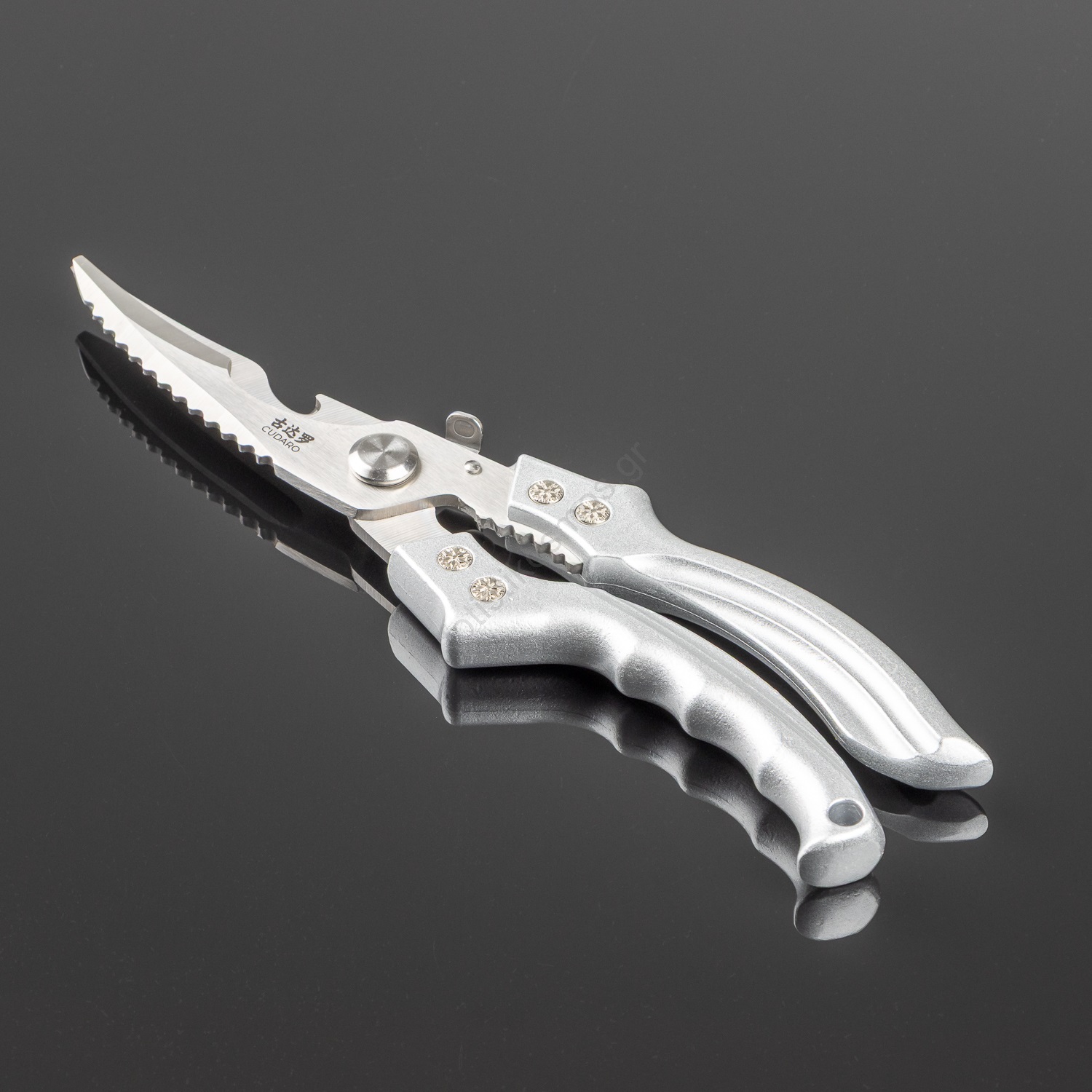 • Ψαλίδια για πουλερικά, κατασκευασμένα από υψηλής ποιότητας ανοξείδωτο χάλυβα 3Cr13 σε κλασικό ασημί φινίρισμα.