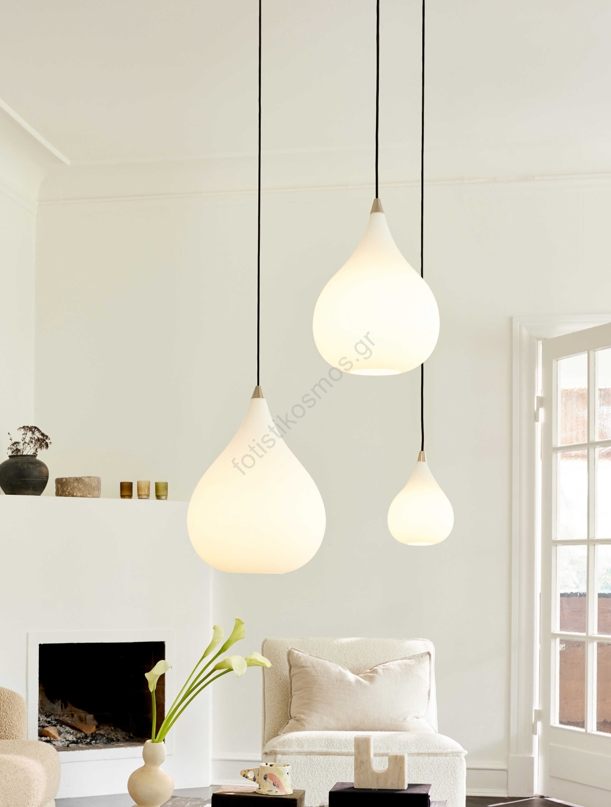 Halo Design 407931 - Κρεμαστό φωτιστικό DROPS με καλώδιο 1xE27/40W/230V, διάμετρος 30 cm, λευκό/ματ χρώμιο