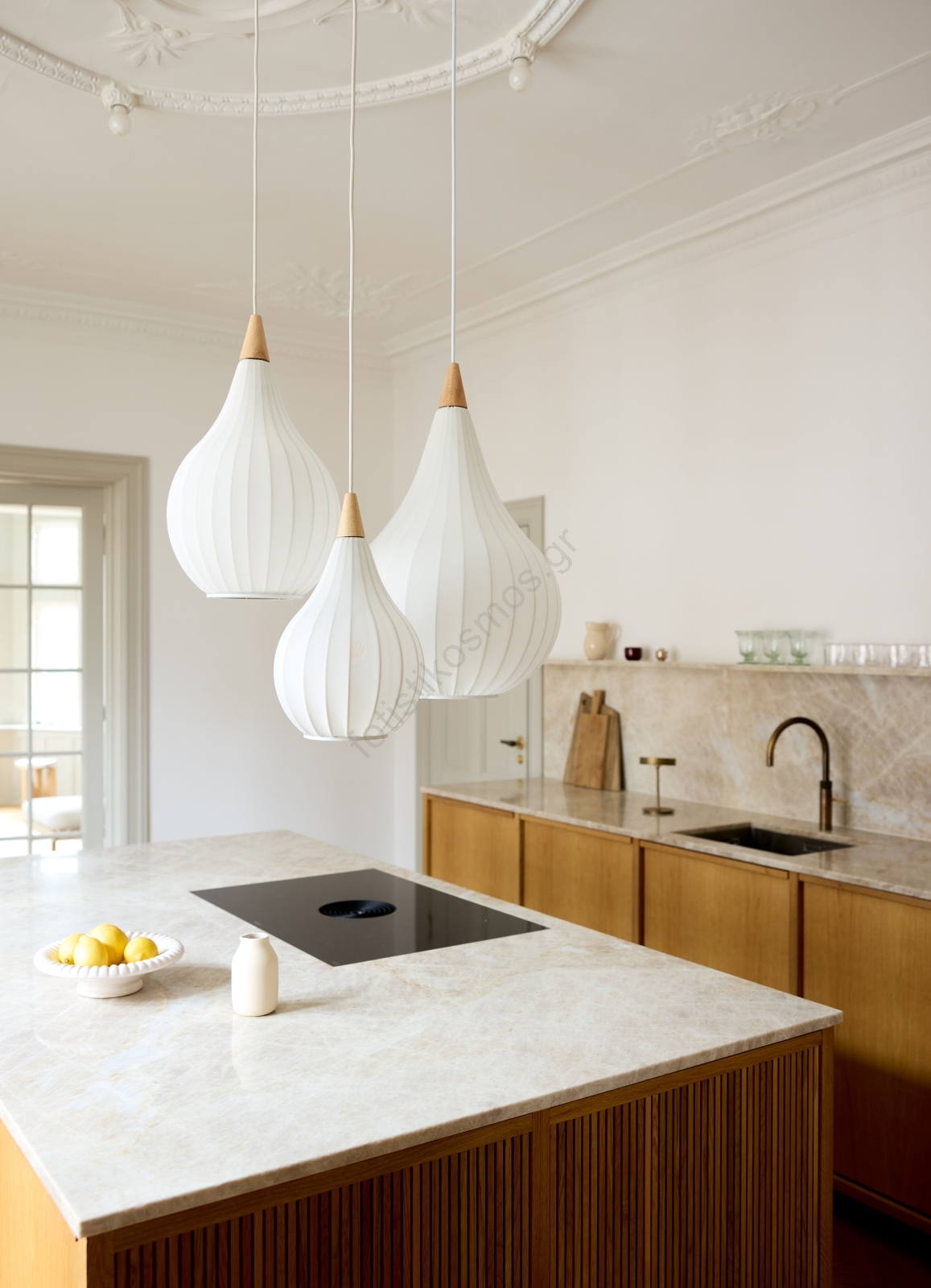 Halo Design 746262 - Κρεμαστό φωτιστικό με καλώδιο DROPS 1xE27/40W/230V Ø 30 cm λευκό/δρυς