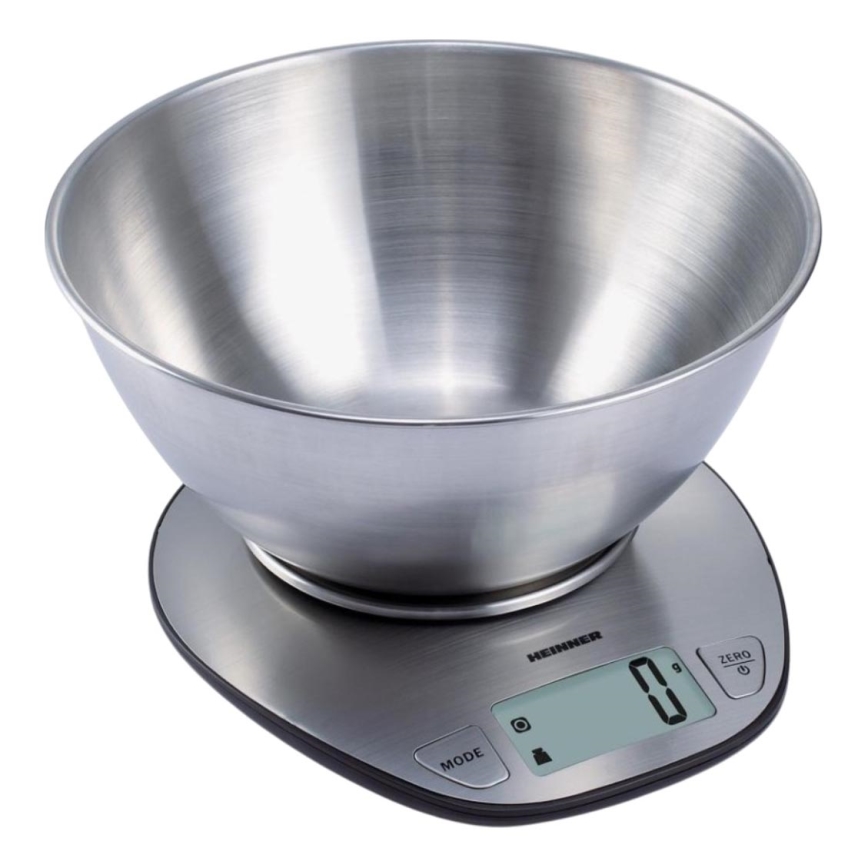 Heinner HKS-5SS - Ψηφιακή ζυγαριά κουζίνας με μπολ, ανοξείδωτη, 2xAAA