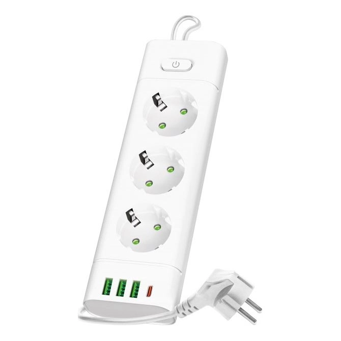 • Αριθμός εξόδων: 3 x 230V, 3 x USB-A και 1 x USB-C.