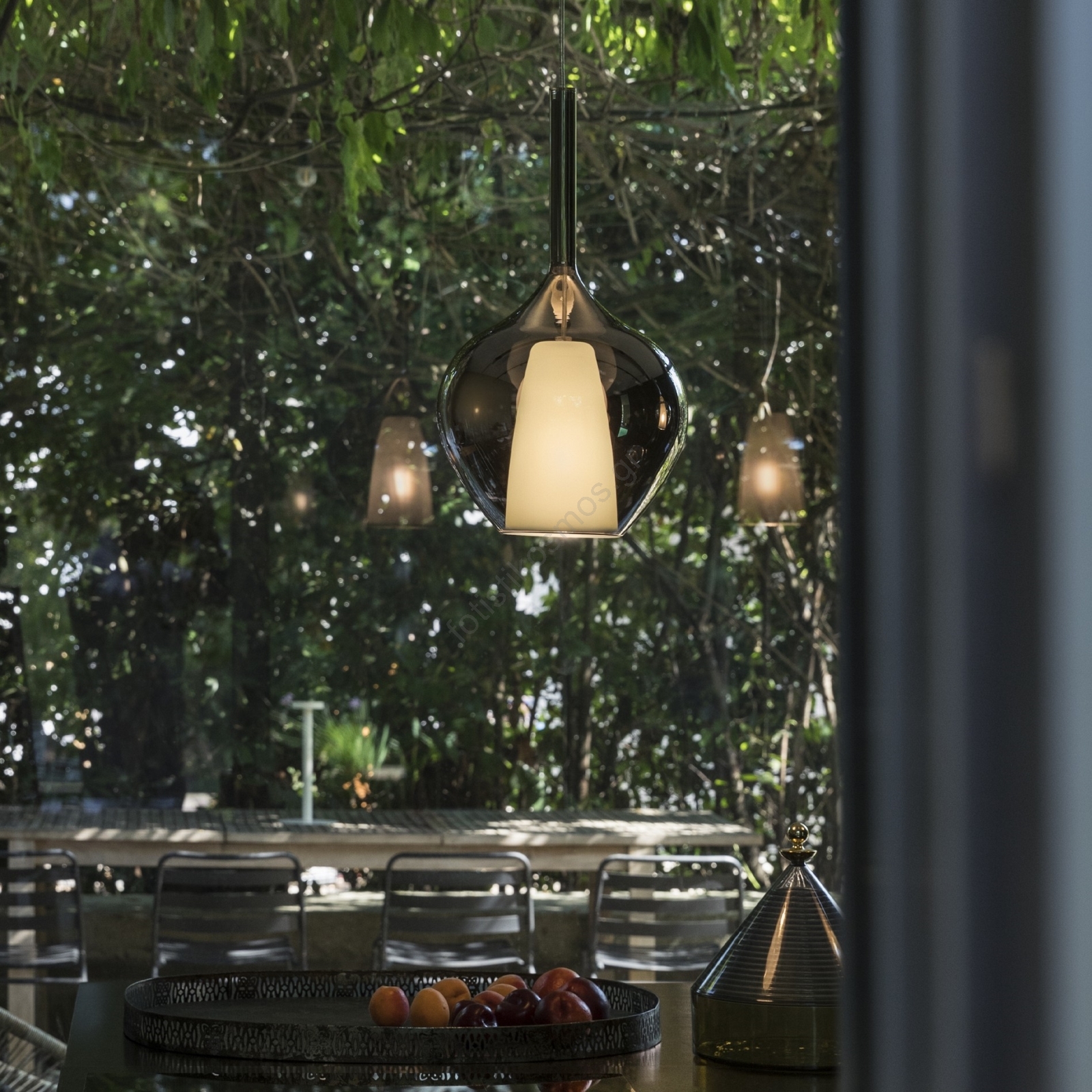 • Ideal Lux - Κρεμαστό φωτιστικό με καλώδιο KALIQUE 1xE27/42W/230V Ø 18 cm καπνιστό μπλε
