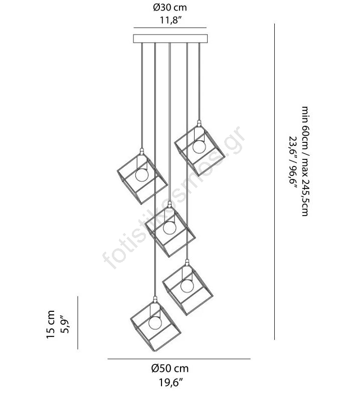 • Ideal Lux - Κρεμαστό φωτιστικό οροφής ICE 5xE27/60W/230V διάμετρος 50 cm μαύρο