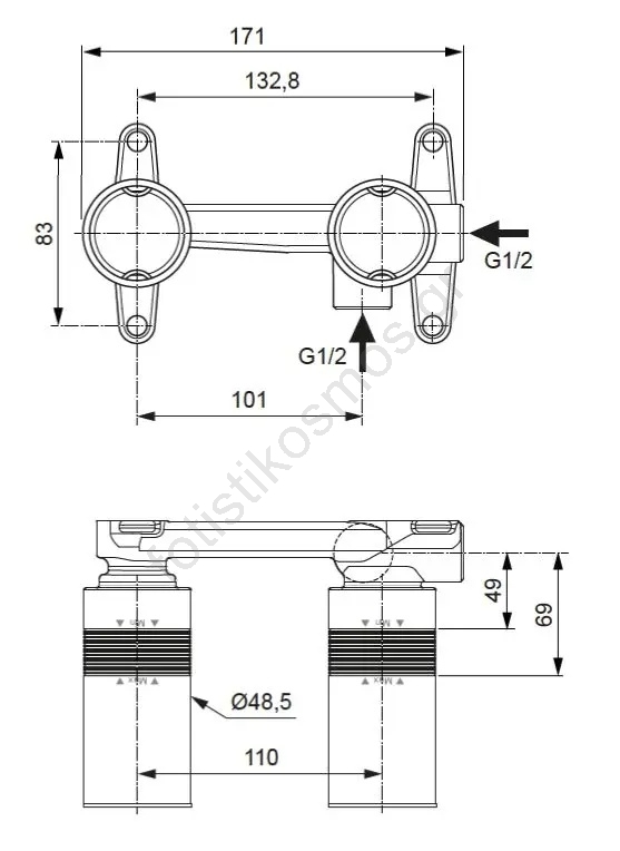 • Προορίζεται για κρυφή εγκατάσταση και διαθέτει σπείρωμα σύνδεσης G1/2.