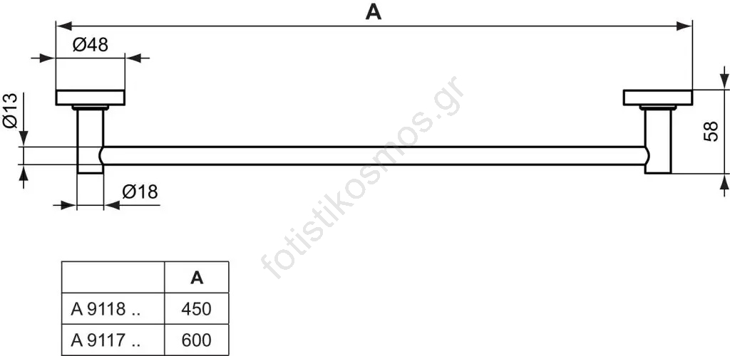 • Με μήκος 600 mm προσφέρει αρκετό χώρο για άνετη ανάρτηση πετσετών.
