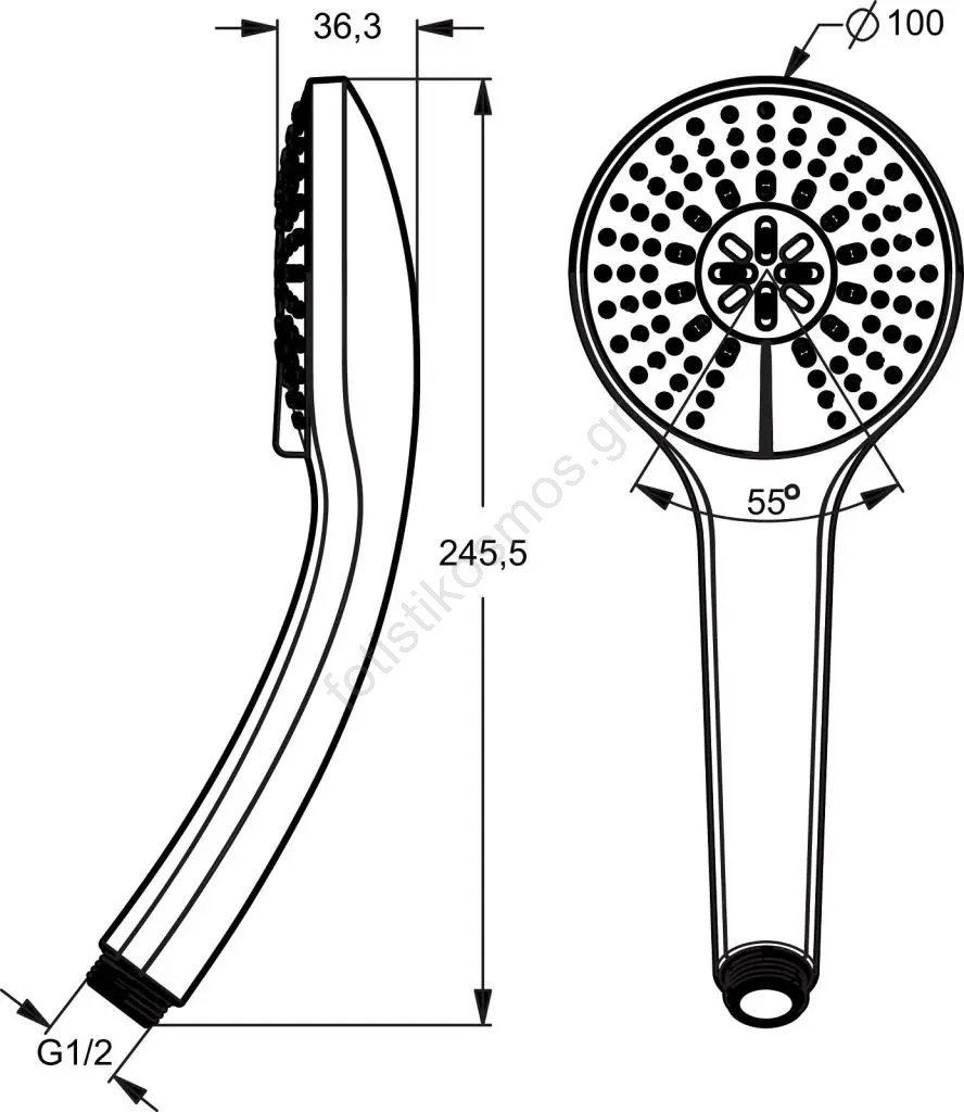 • Το σπείρωμα σύνδεσης της χειρολαβής ντους είναι το πρότυπο G 1/2.
