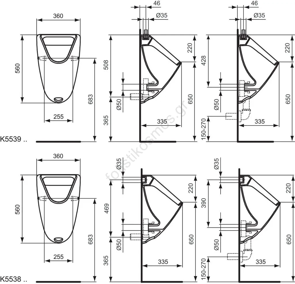 Ideal Standard K553901 - Ουρητήρας EUROVIT με παροχή από πάνω, οπίσθια αποχέτευση, κεραμικός/λευκός