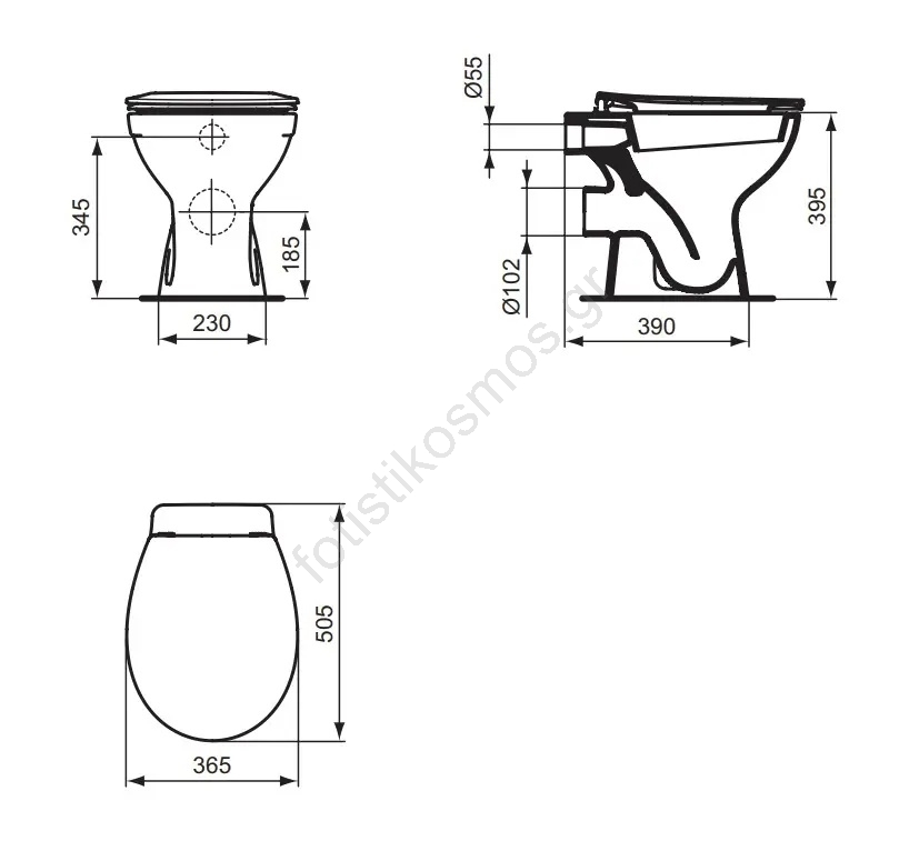• Η λεκάνη έχει σχεδιαστεί με τυπική πίσω αποχέτευση.