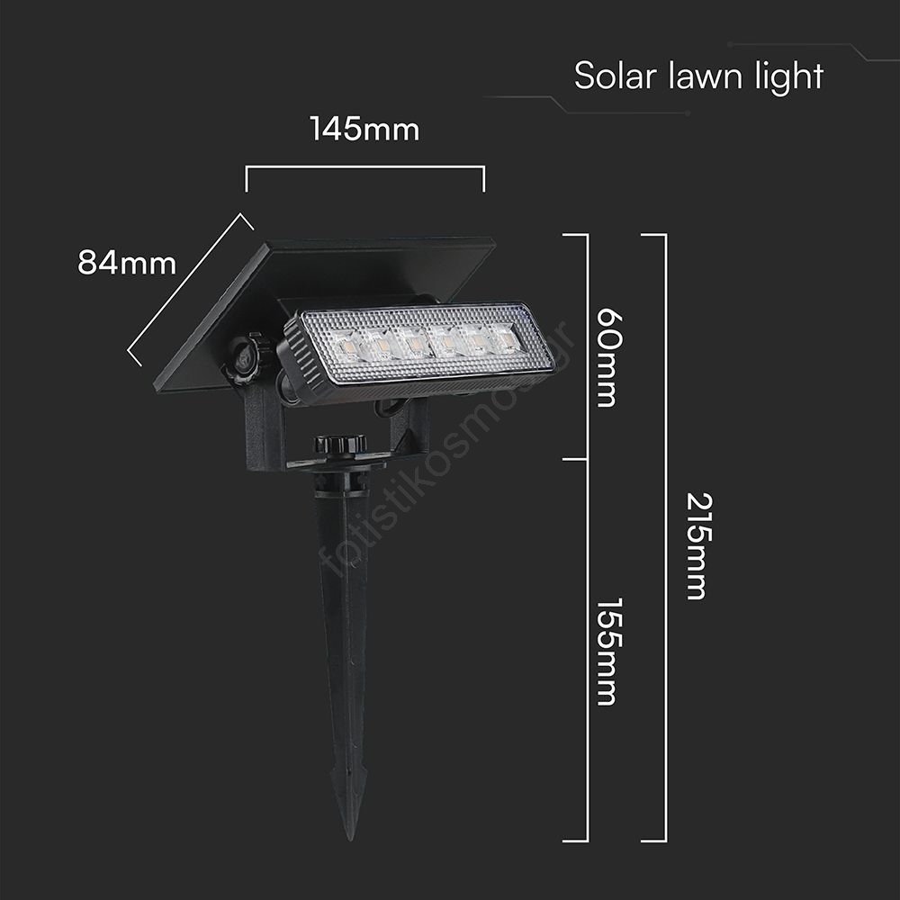 LED Ηλιακό Φωτιστικό LED/0,9W/3,7V 3000K IP65 1200 mAh μαύρο | Fotisti kosmos