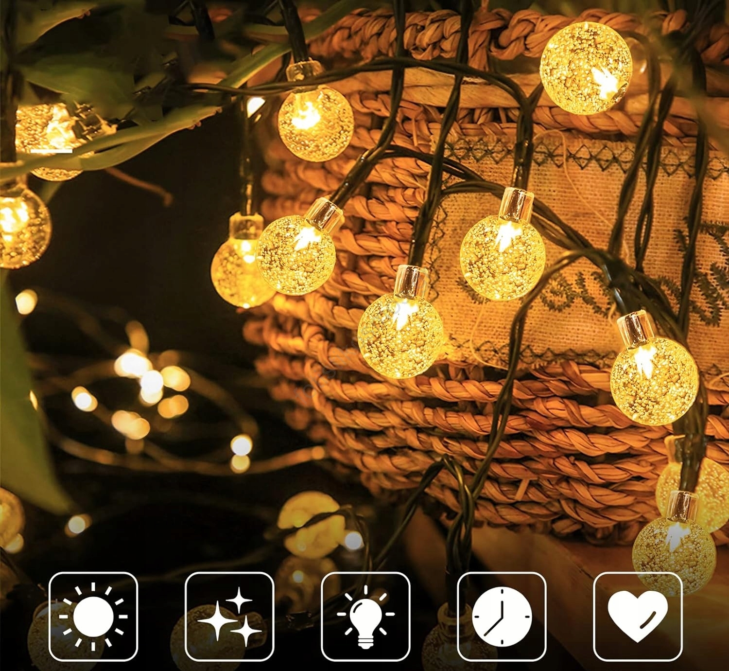 • LED ηλιακή διακοσμητική γιρλάντα 30xLED/8 λειτουργίες 500 mAh 6,5 m IP67 θερμό λευκό