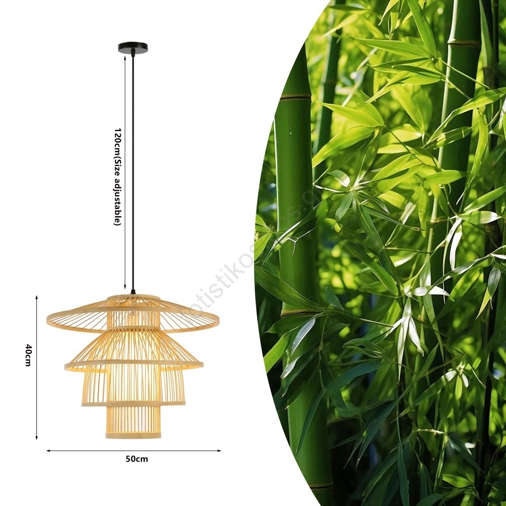 Κρεμαστό φωτιστικό οροφής PINCHOS 1xE27/40W/230V διάμετρος 50 cm μπαμπού χαρακτηρίζεται από ωραίο και λειτουργικό design.  Μια λάμπα με ντουί E27 είναι κατάλληλη για το φωτιστικό. Εδώ, μπορείτε να αγοράσετε και άλλους λαμπτήρες σε συμφέρουσες τιμές. Θα αποκτήσετε μια εντυπωσιακή προσθήκη στο σπίτι σας.