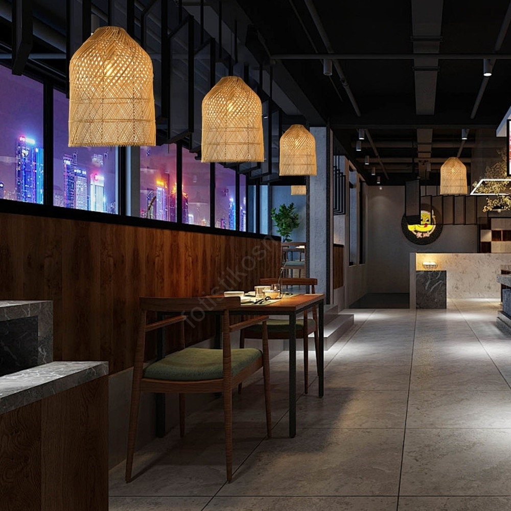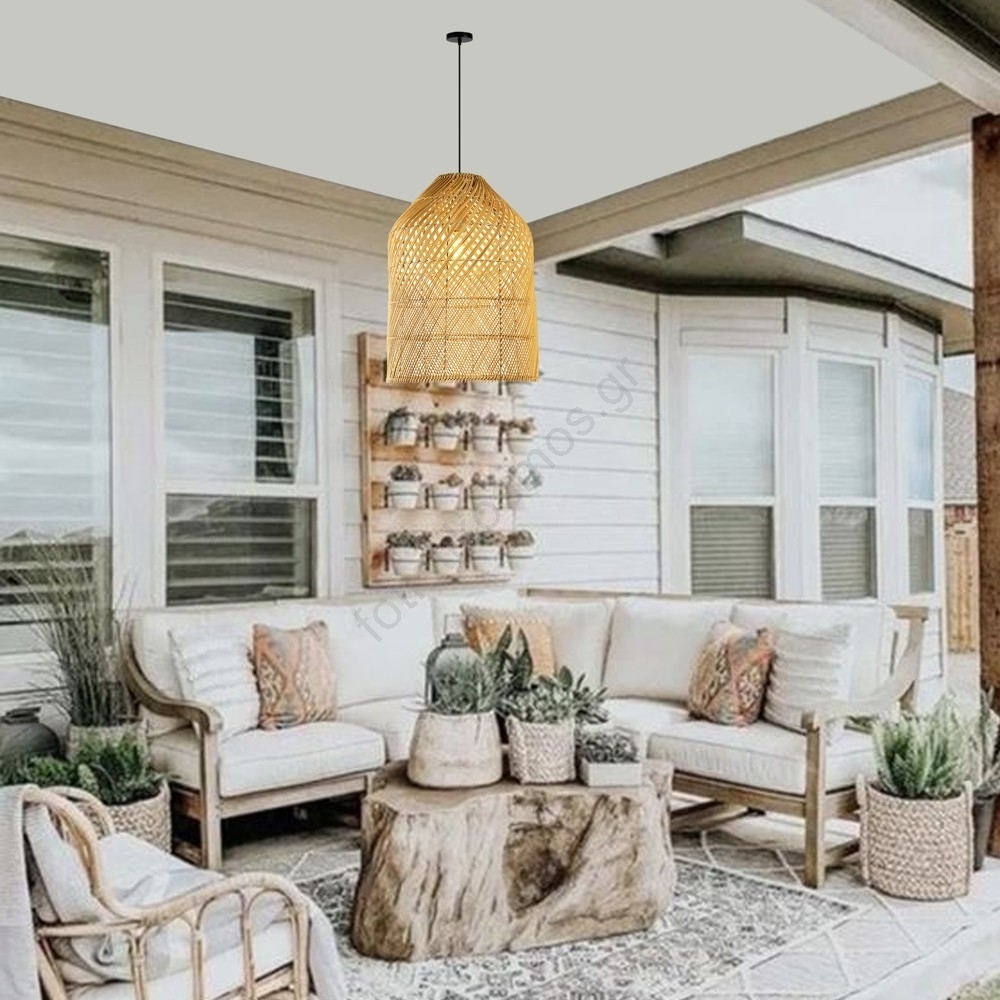 Κρεμαστό φωτιστικό οροφής PELO 1xE27/40W/230V διάμετρος 35 cm rattan