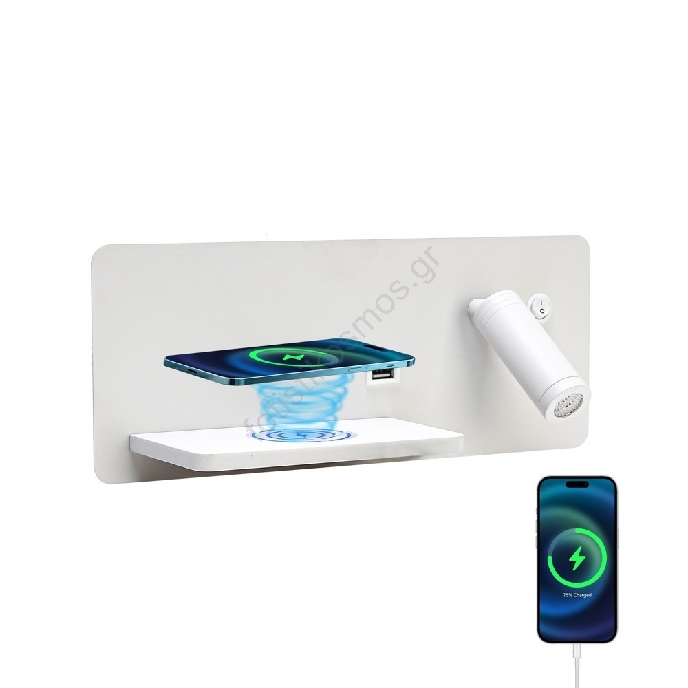 Immax 08286L-LED Επιτοίχιο φωτιστικό με USB, ασύρματη φόρτιση LED/3W/230V | Fotisti kosmos