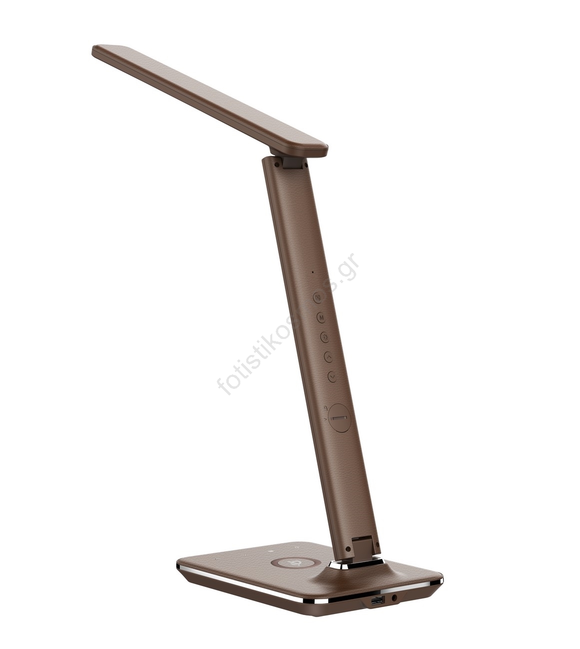 • Επιτραπέζιο φωτιστικό LED ντιμαριζόμενο με ασύρματη φόρτιση QI και USB KINGFISHER LED/8,5W/230V καφέ