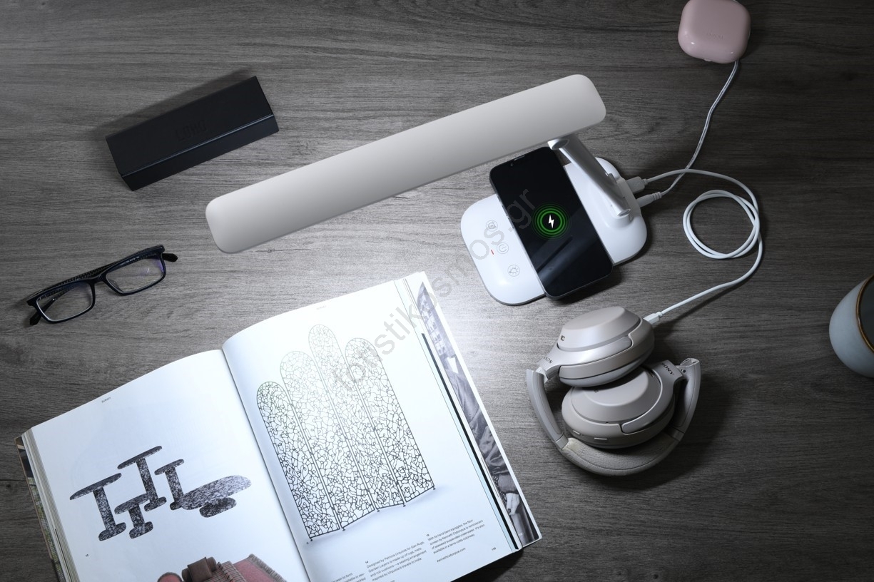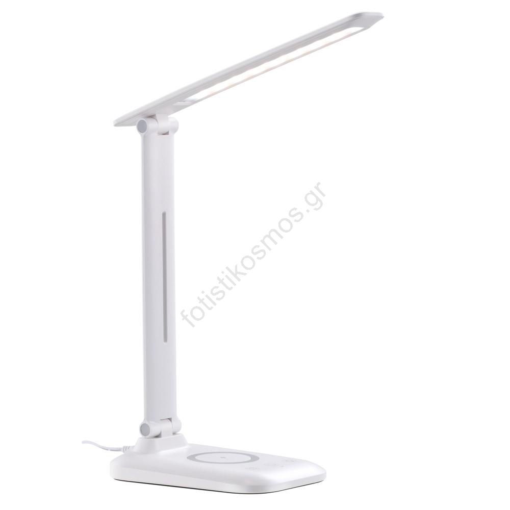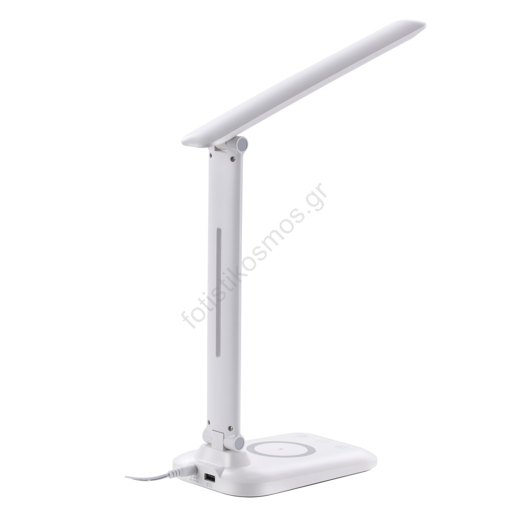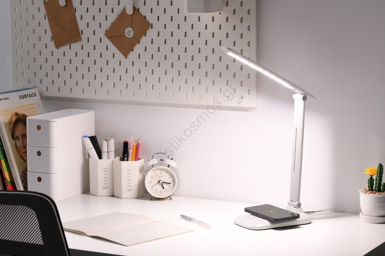 • Ρυθμιζόμενη επιτραπέζια λάμπα LED με ασύρματη φόρτιση QI και θύρα USB LUMI LED/7W/230V, λευκή