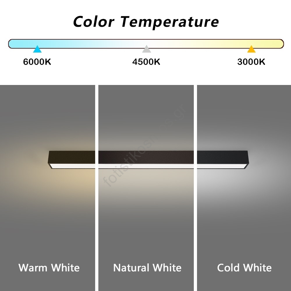 • Ρυθμιζόμενη ένταση σε βήματα (3000K, 4500K, 6000K).