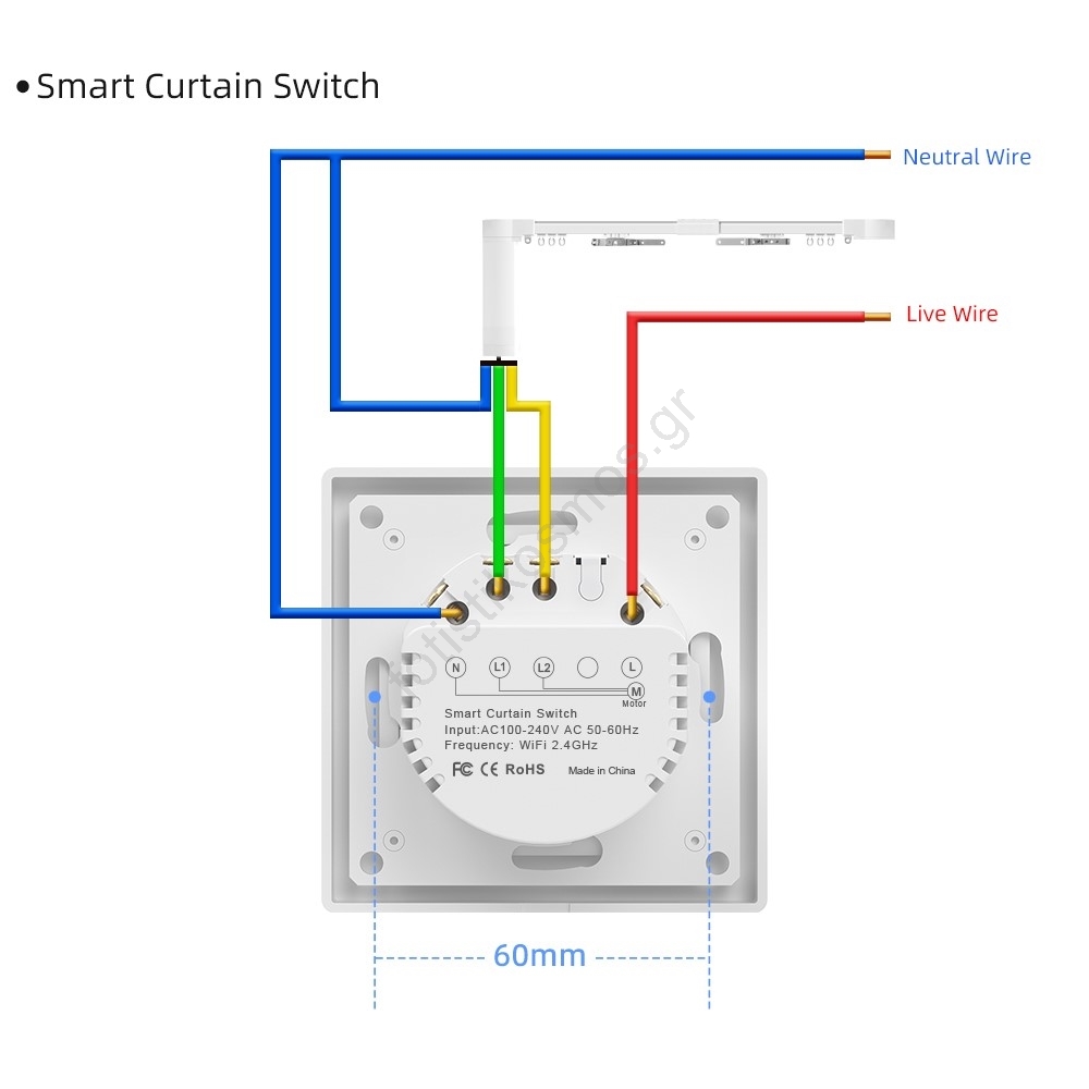 • Upozornění - tento dotykový Wi-Fi vypínač potřebuje pracovní střední vodič, tedy potřebuje v rozvodné krabici vypínače modrý vodič - "ουδέτερος".