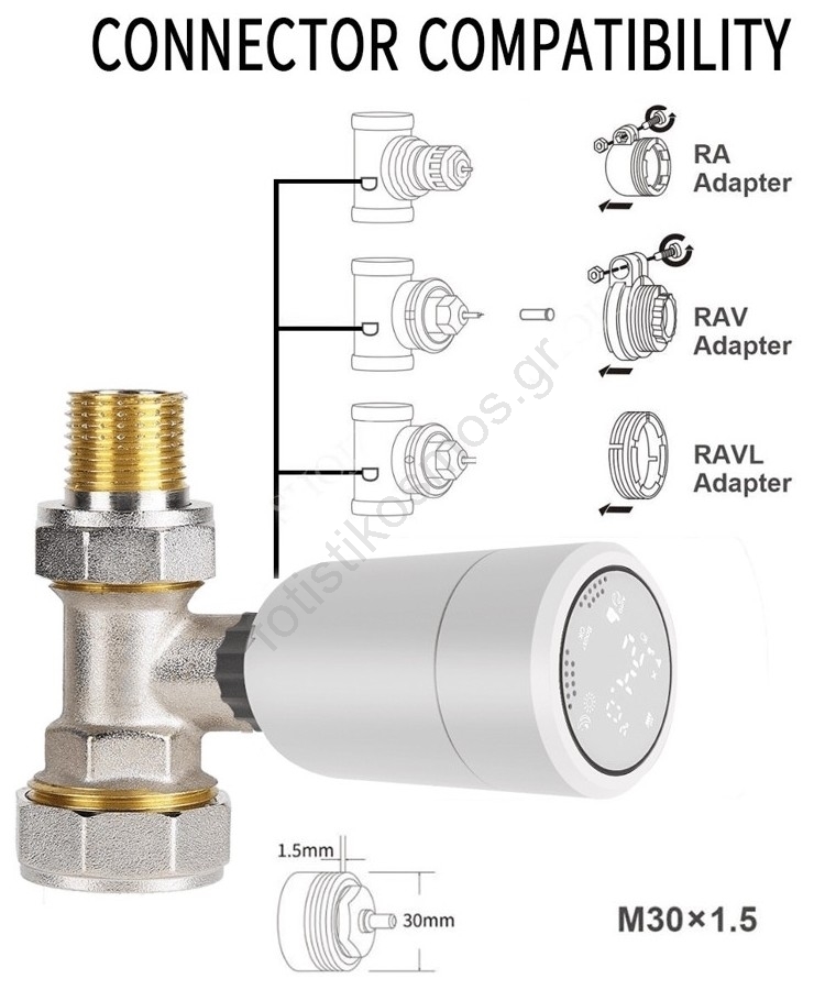 • Εύκολη εγκατάσταση χάρη στη συμβατή σύνδεση της θερμοστατικής κεφαλής με το σώμα του καλοριφέρ - M30 x 1,5.