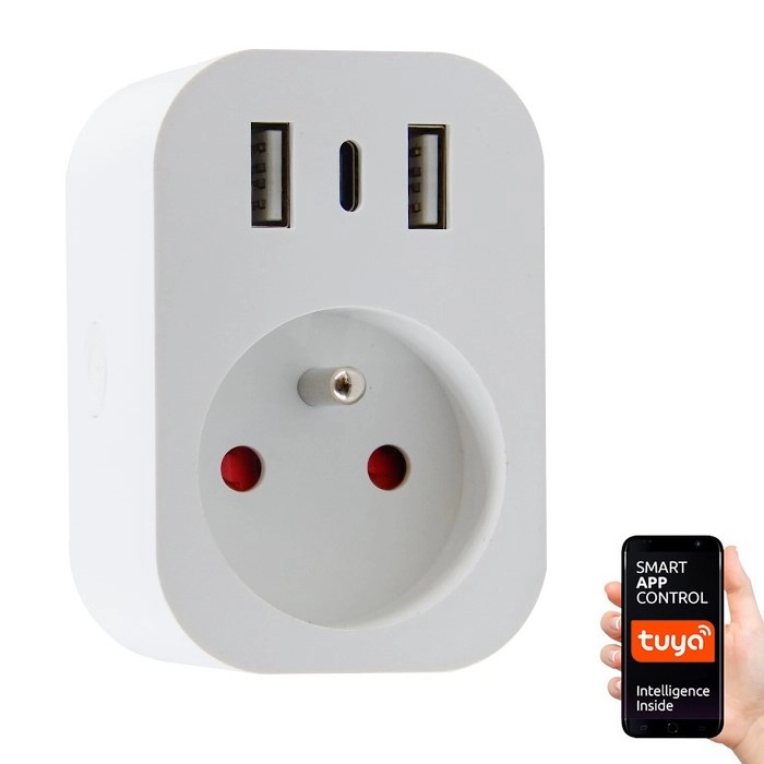 Immax NEO 07772L - Έξυπνη πρίζα splitter 16A/230V + 2xUSB+1xUSB C Wi-Fi Tuya