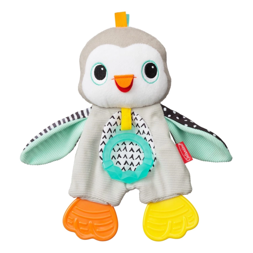 • Aυτός ο γλυκός πιγκουίνος που συνοδεύεται από κρίκο οδοντοφυΐας διαθέτει ποικιλία υφών και ήχων που το μωρό λατρεύει να εξερευνά και είναι κατάλληλος ως το πρώτο παιχνίδι του μωρού.