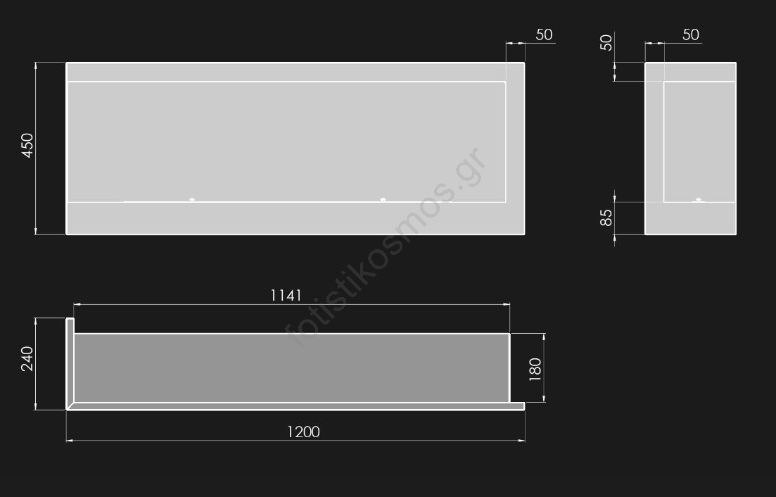 • Διαστάσεις τζακιού: 45 x 120 x 24 εκ.