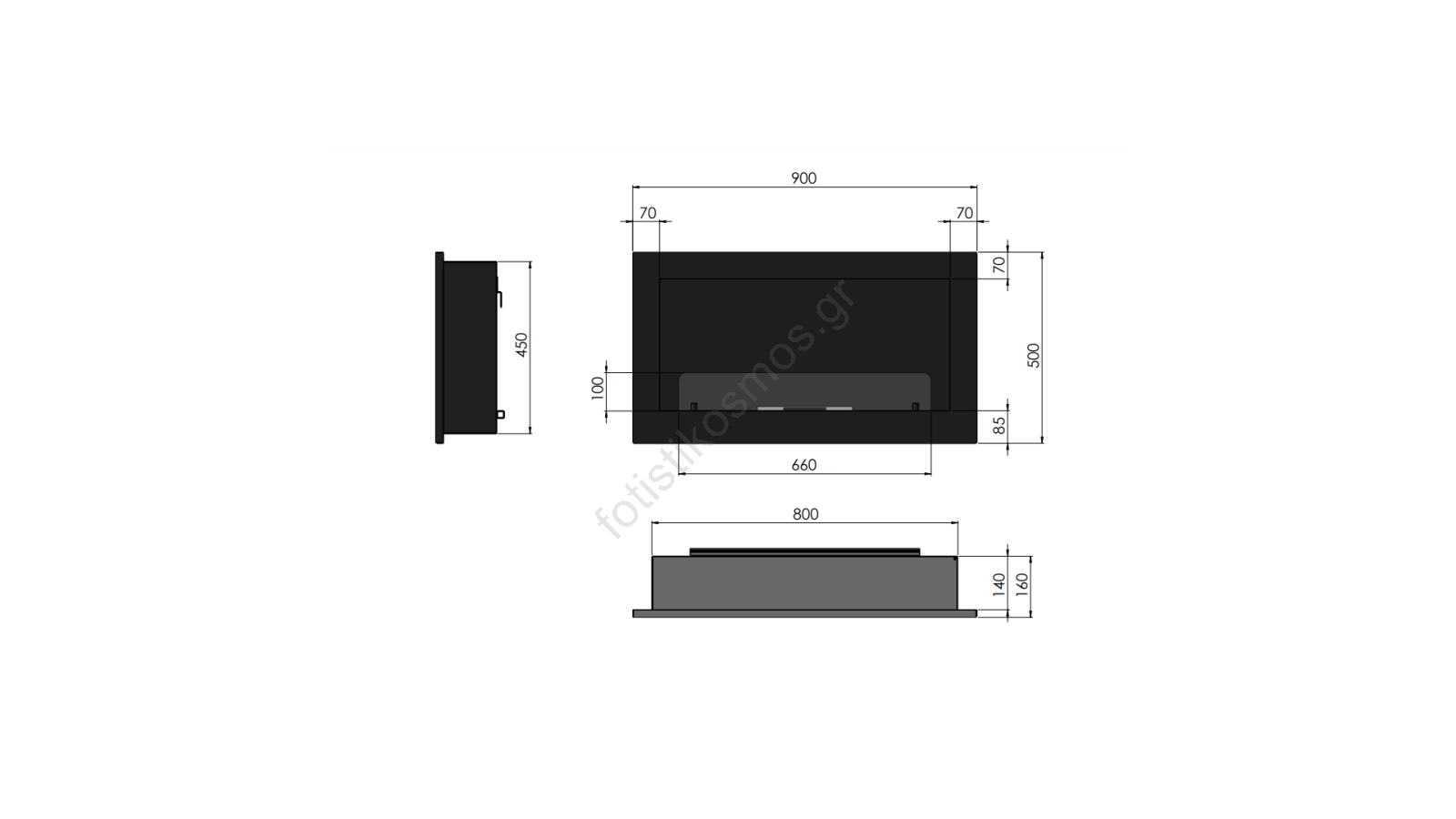 • Διαστάσεις τζακιού: 50 x 90 x 16 εκ.