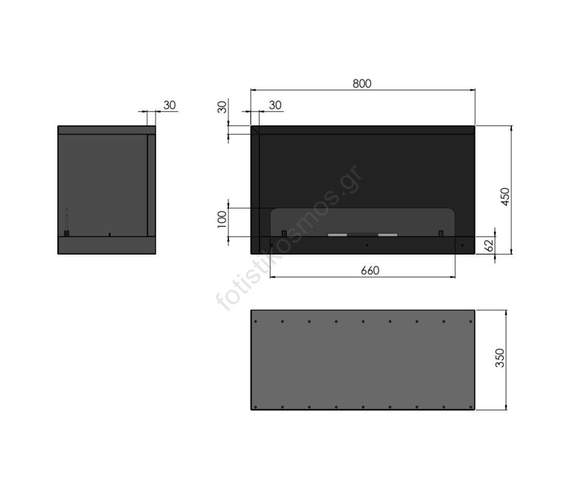 • Διαστάσεις τζακιού: 45 x 80 x 35 εκ.