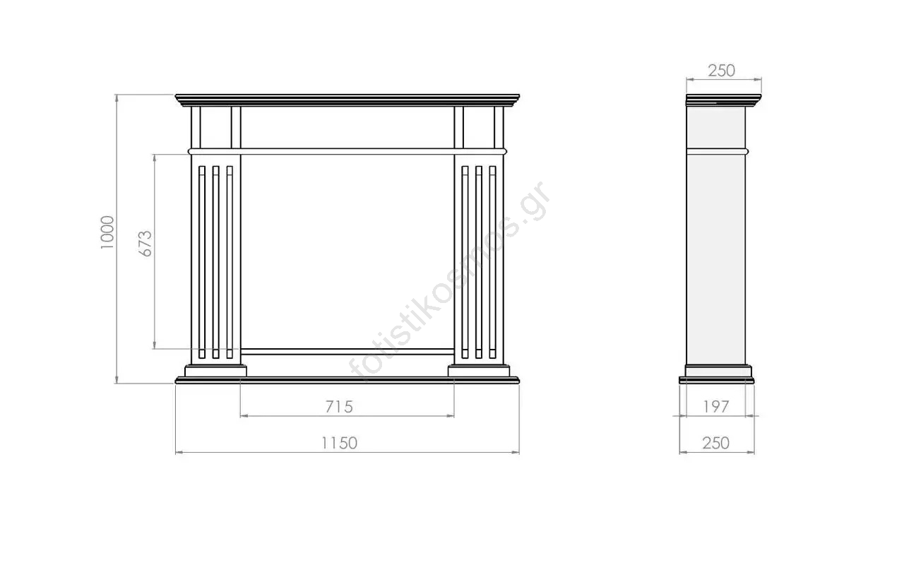 • Διαστάσεις του τζακιού: 100 x 115 x 25 εκ.