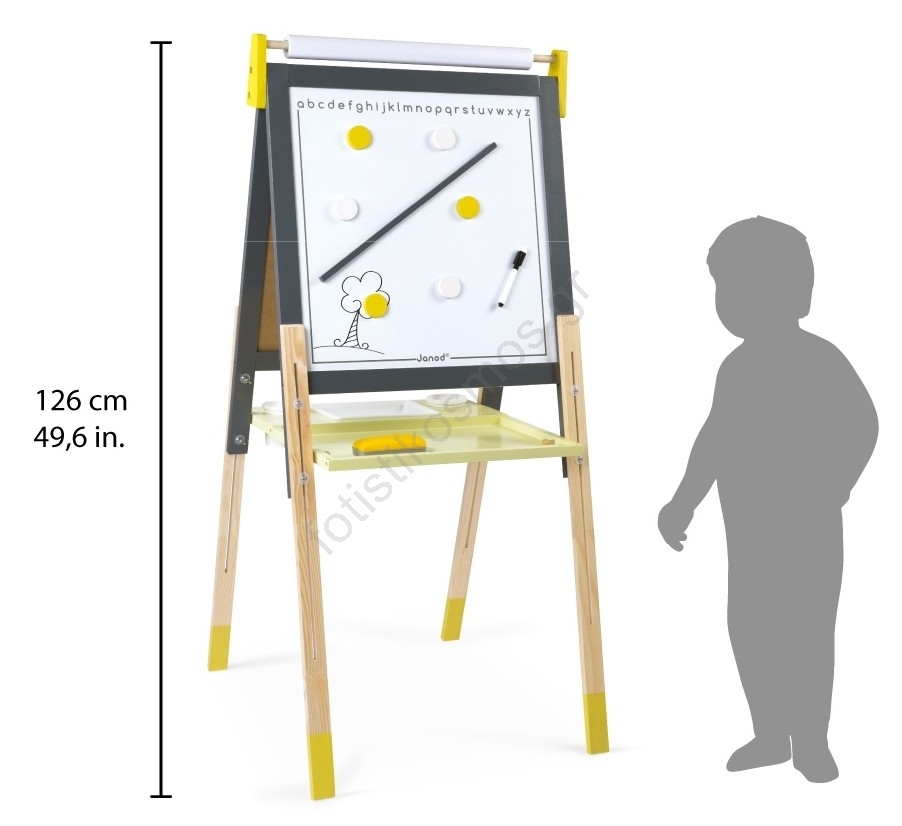 • Ο ξύλινος μαγνητικός πίνακας είναι ρυθμιζόμενος σε ύψος, ώστε να προσαρμόζεται και να μεγαλώνει μαζί με το παιδί.