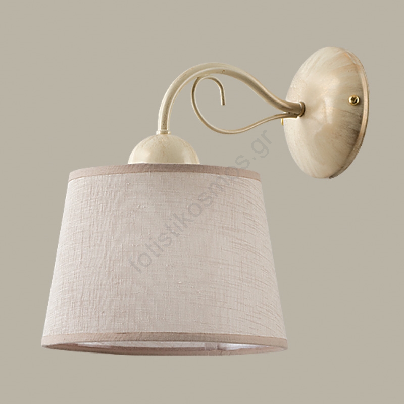 • Η μεταλλική κατασκευή σε απόχρωση εκρού έχει συνδυαστεί με υφασμάτινη σκιά σε απόχρωση καπουτσίνο.