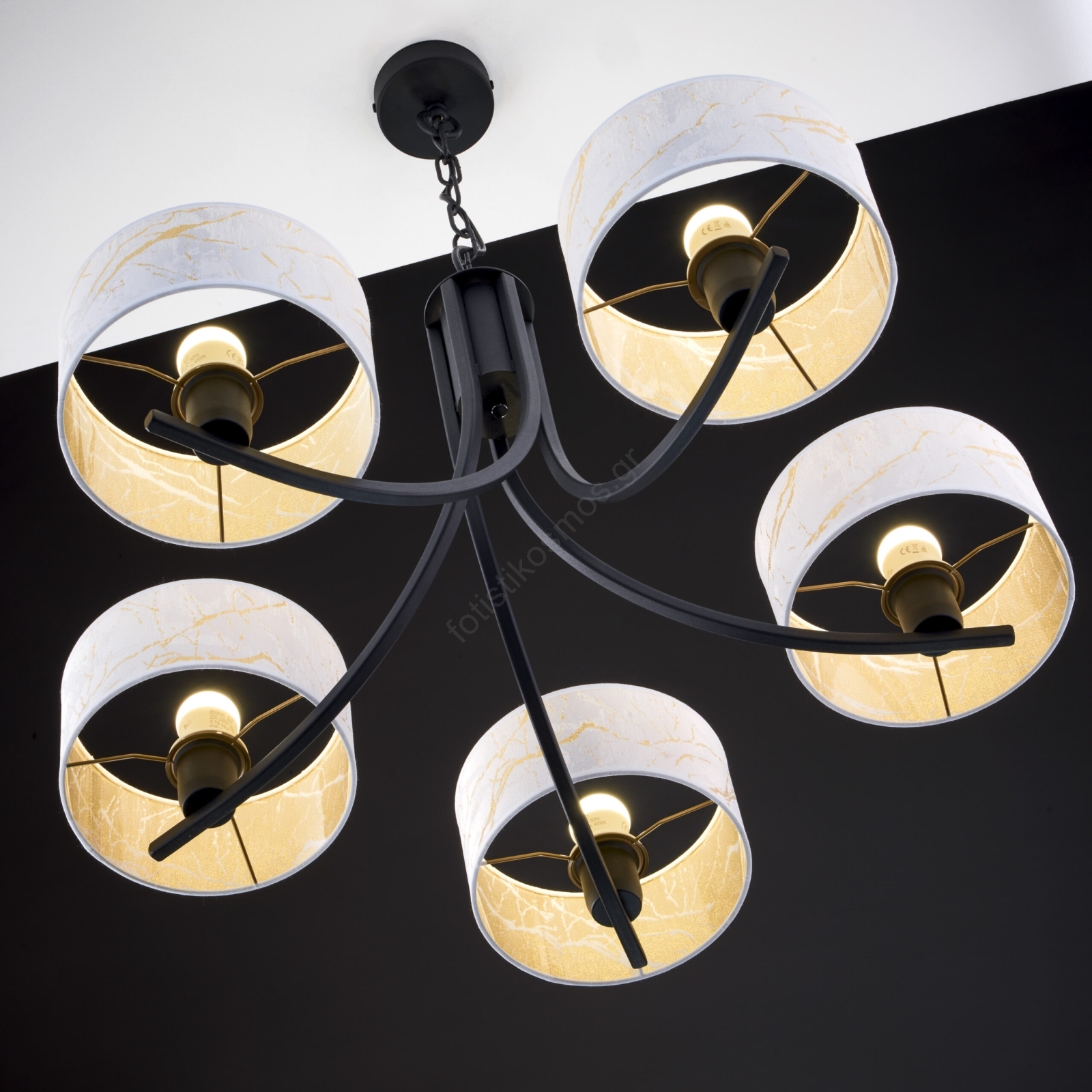Jupiter 2104 - Πολυέλαιος με αλυσίδα ARTHUR 5xE27/15W/230V λευκό/μαύρο/μαρμάρινο σχέδιο | Fotisti ko
