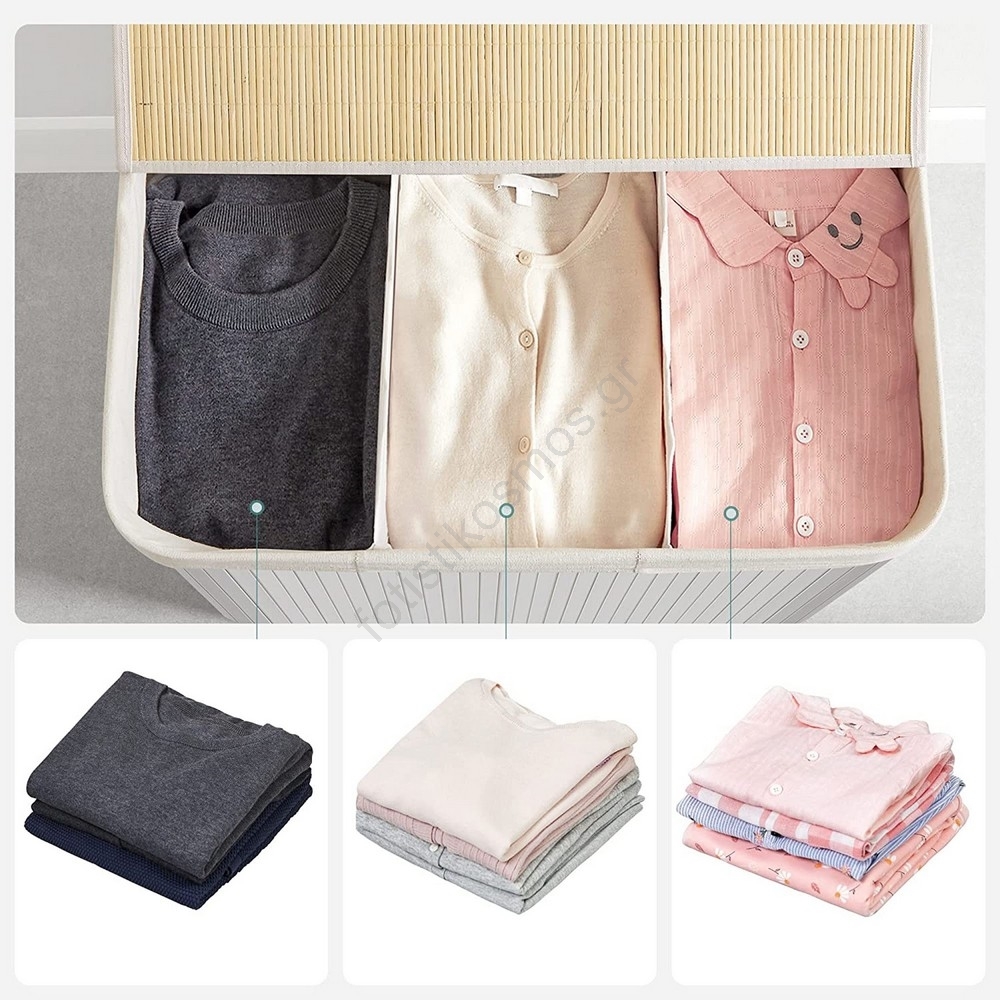 • Οι τρεις θήκες σας βοηθούν να αποθηκεύετε κλινοσκεπάσματα και ρούχα χωριστά ή να διαχωρίζετε τα ρούχα ανά χρώμα.