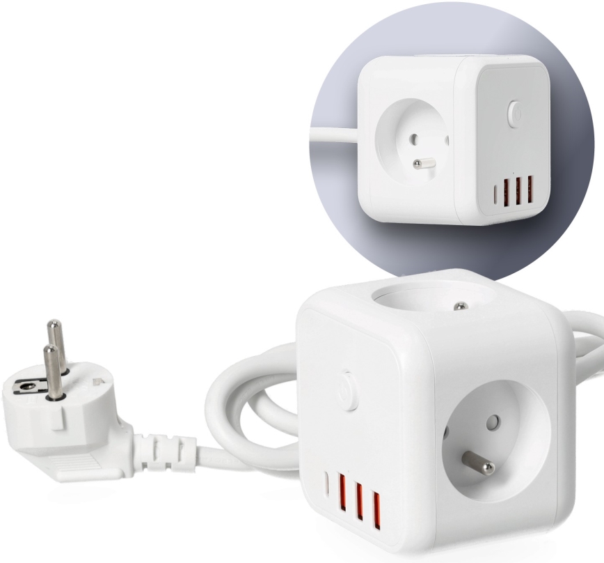 Πολύπριζο κύβος με διακόπτη LINEA 3x230V + 4xUSB A/C λευκό