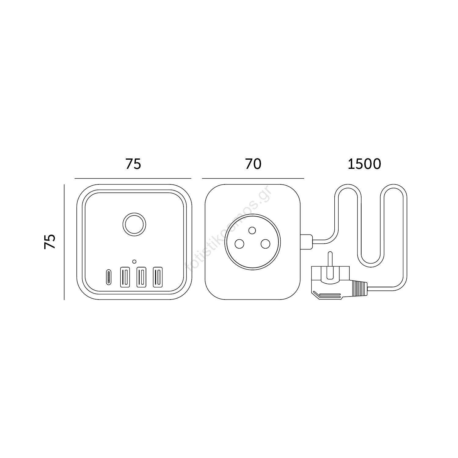 • Συμπαγής πολύπριζος - κύβος με πλευρά μήκους 75 mm.
