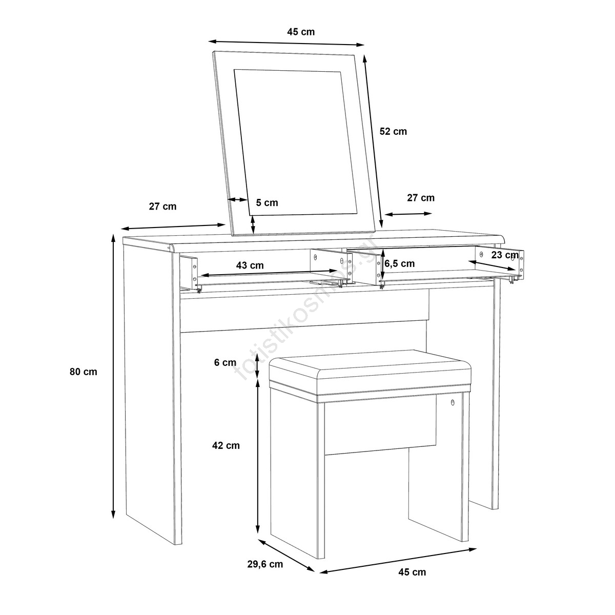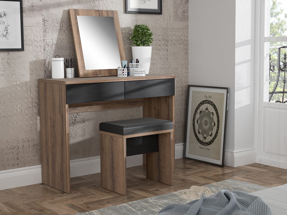 • Διαθέτει δύο συρτάρια που εξασφαλίζουν άφθονο αποθηκευτικό χώρο για καλλυντικά και άλλα αντικείμενα.