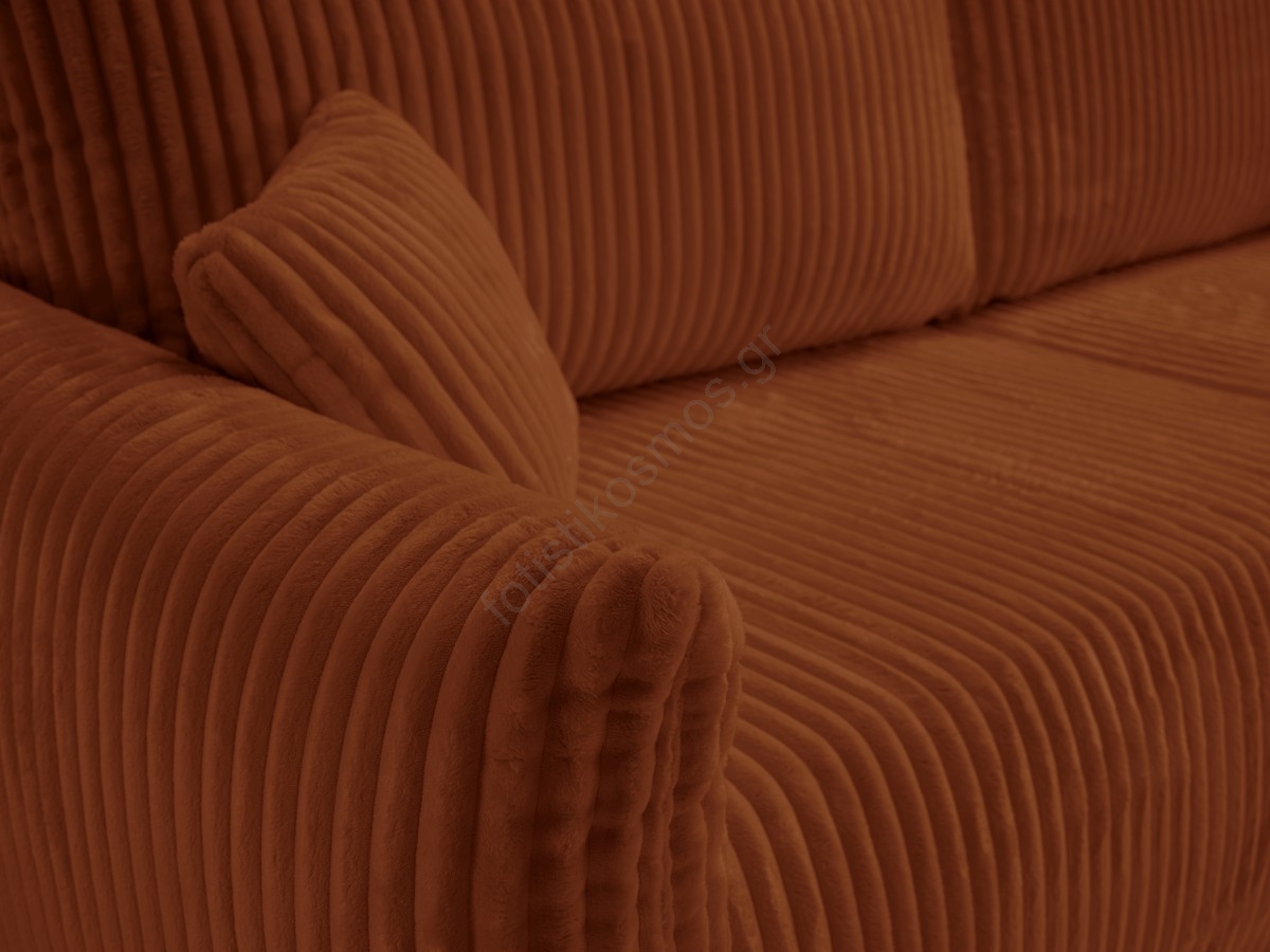 • Η πλάτη του καναπέ κοσμείται από ποιοτική ταπετσαρία, επιτρέποντας την ελεύθερη τοποθέτηση του καναπέ στο χώρο.