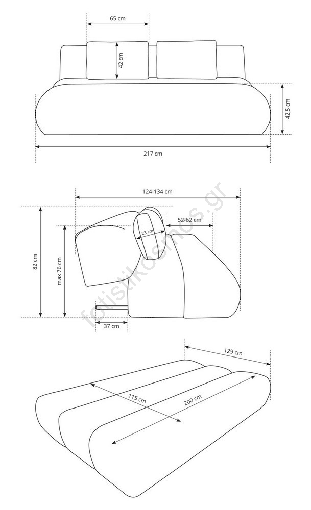 • Το βάθος καθίσματος 52-62 cm προσφέρει αρκετό χώρο για χαλαρωτική και εργονομική καθιστική στάση.