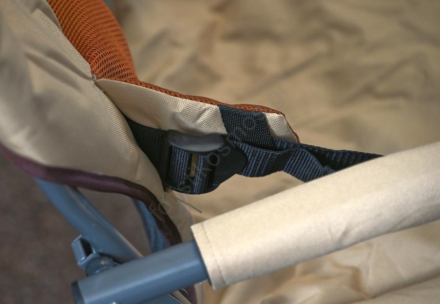 • Το πίσω μέρος της πολυθρόνας διαθέτει επιπλέον οσφυϊκή στήριξη, η οποία ρυθμίζεται μέσω ιμάντων στα πλαϊνά.