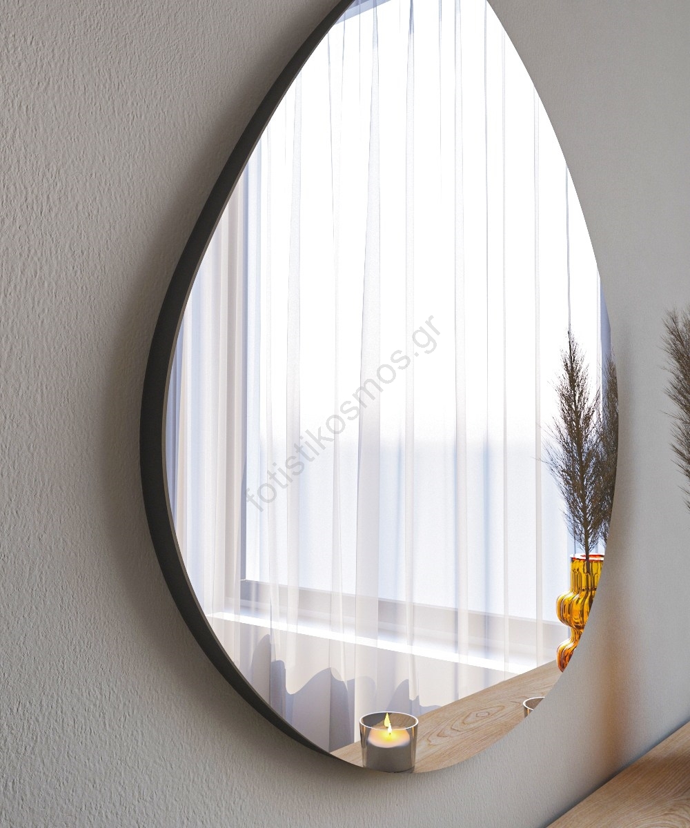 • Καθρέφτης τοίχου με μοντέρνο σχεδιασμό και μαύρη πλευρά.