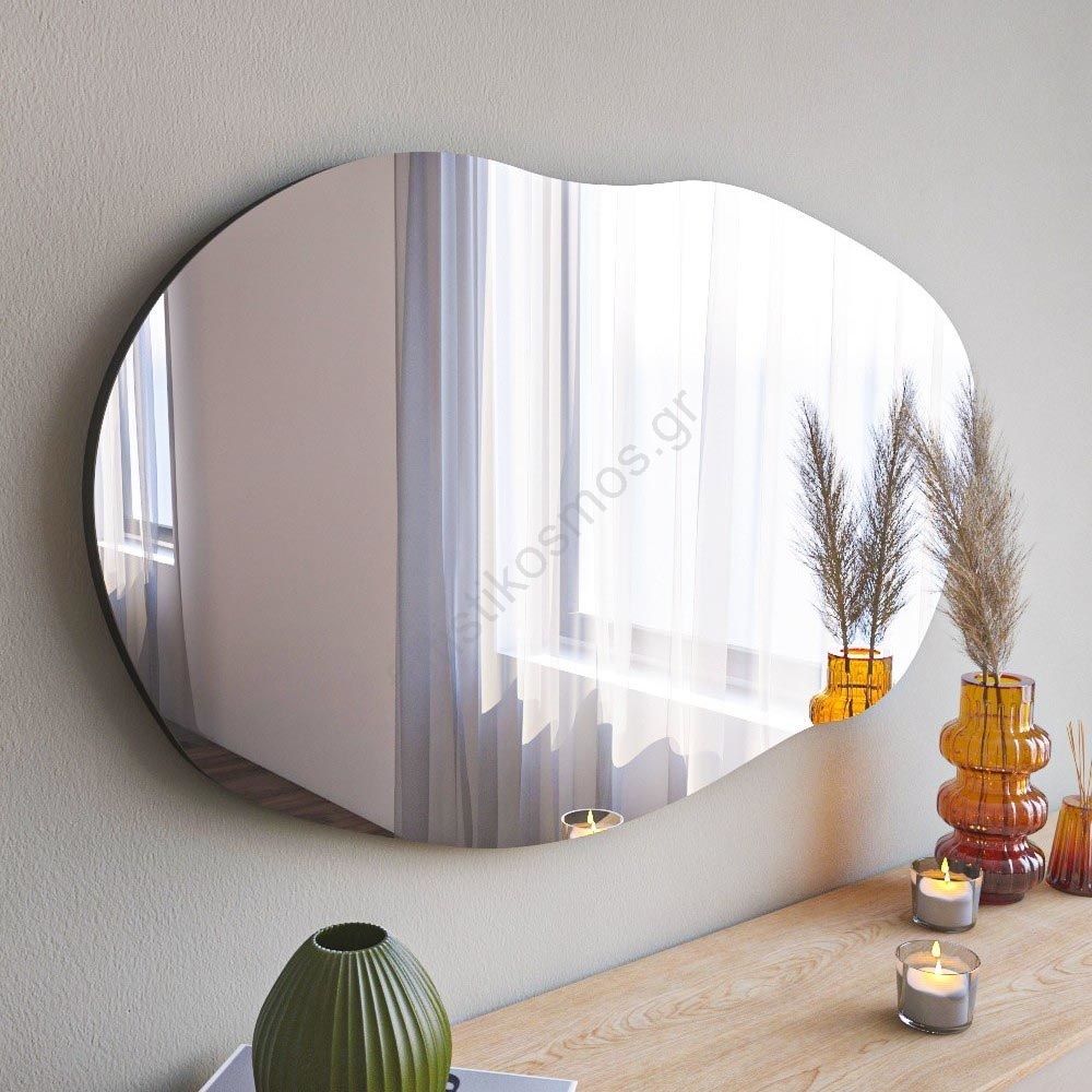 • Καθρέφτης τοίχου με μοντέρνο σχεδιασμό και μαύρη πλευρά.