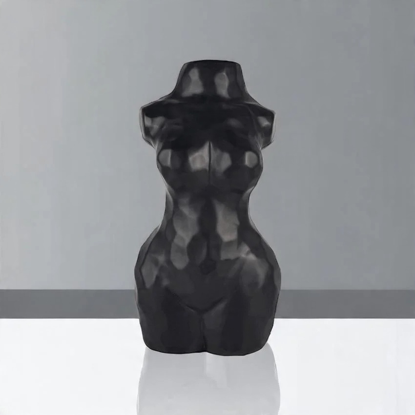 • Διακοσμητικό βάζο για λουλούδια σε σχήμα γυναικείας φιγούρας σε μαύρο χρώμα.