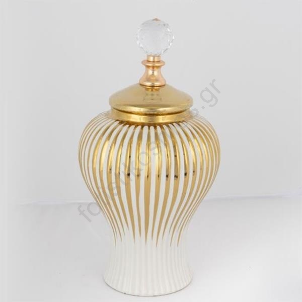 Κεραμικό βάζο 35x17,5 cm χρυσό/λευκό | Fotisti kosmos