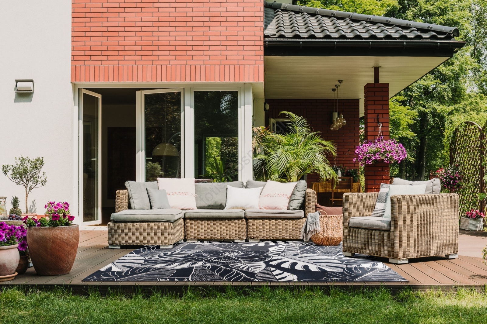 Χαλί εξωτερικού χώρου JUNGLE 160x220 cm μαύρο/λευκό/σχέδιο φύλλων