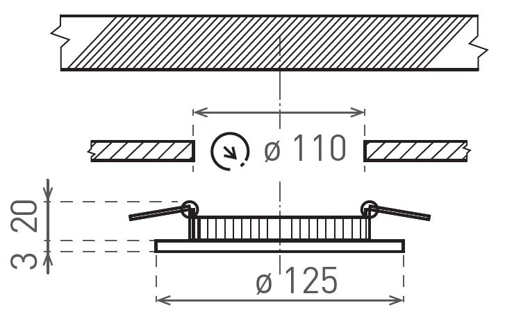 • Το φωτιστικό διαθέτει ελατήρια στερέωσης που επιτρέπουν εύκολη εγκατάσταση, για παράδειγμα σε γυψοσανίδα.