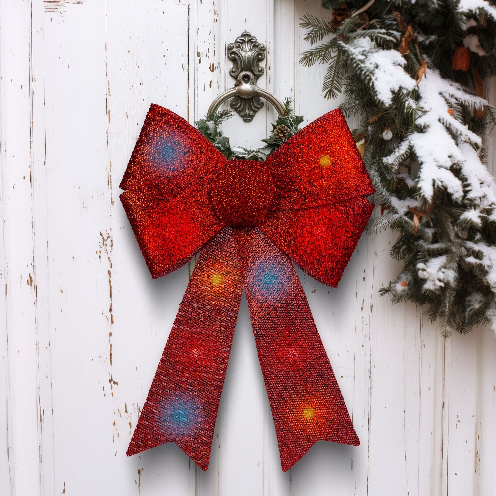 Χριστουγεννιάτικη διακόσμηση LED RGB 11xLED/3xLR44 40x30 cm με κόκκινο φιόγκο