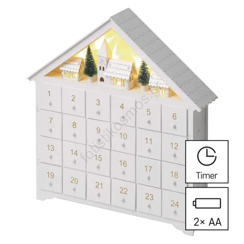 • Ημερολόγιο Advent με LED σε σχήμα σπιτιού.