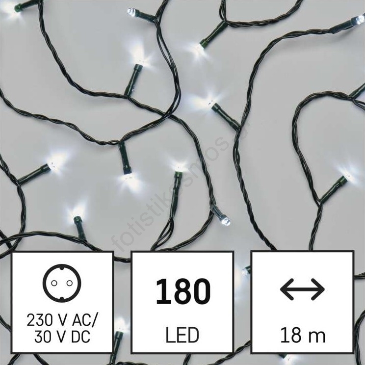• Γιρλάντα LED εξωτερικού χώρου 180 LED / 8 λειτουργίες, 23 m, IP44, ψυχρό λευκό