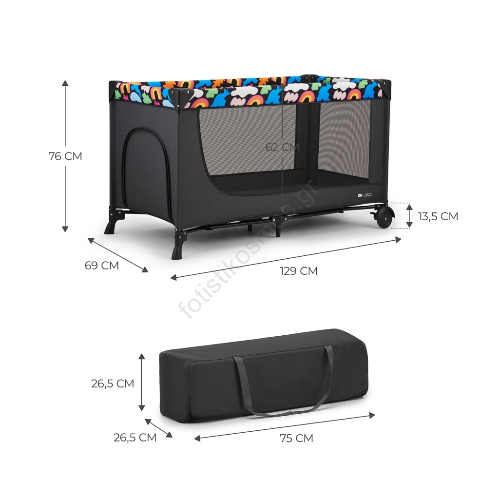 • Διαστάσεις κλεισμένου κρεβατιού: 75 × 26,5 × 26,5 εκ.