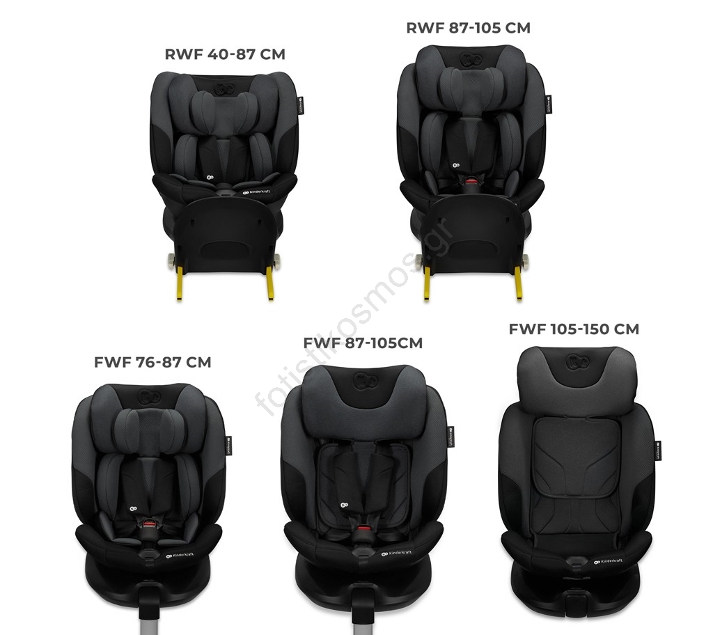 • Το ταξίδι με φορά προς τα πίσω (RWF) είναι δυνατό έως την ηλικία των τεσσάρων ετών, γεγονός που αυξάνει σημαντικά την προστασία σε περίπτωση μετωπικής πρόσκρουσης.